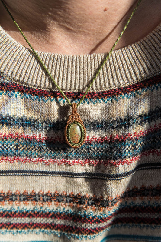 Collar con semilla de aguacate y Labradorita
