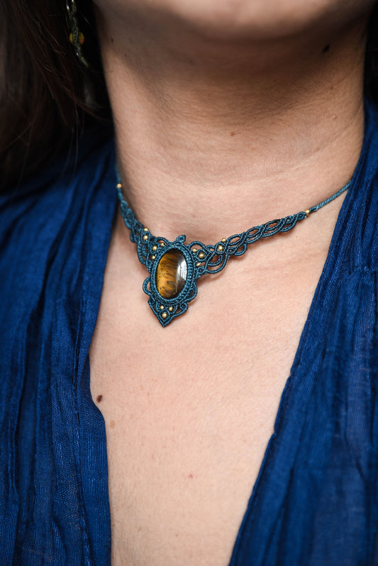 Gargantilla con Jaspe Maligano y Ojos de tigre dorados