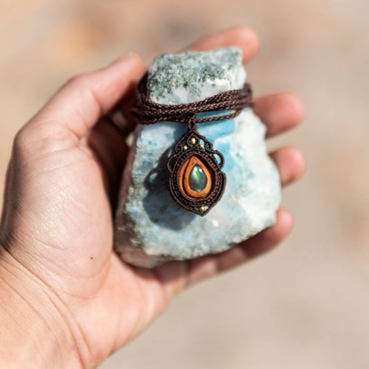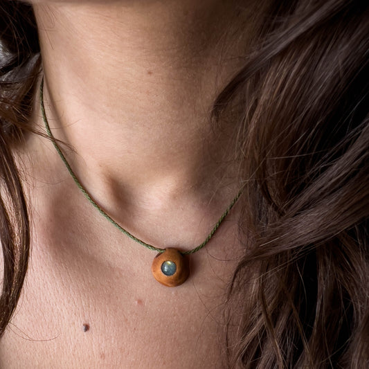 Collar con semilla de aguacate y Labradorita