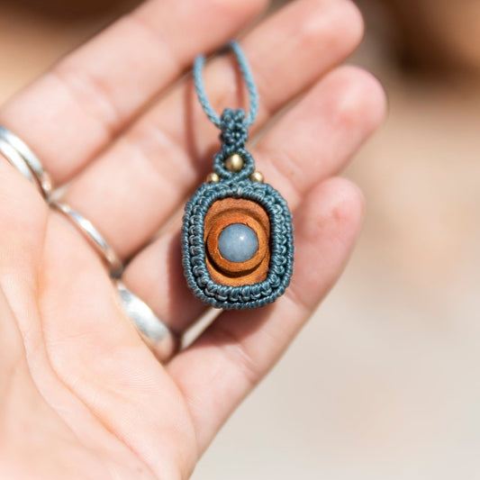 Collar con semilla de aguacate y aguamarina