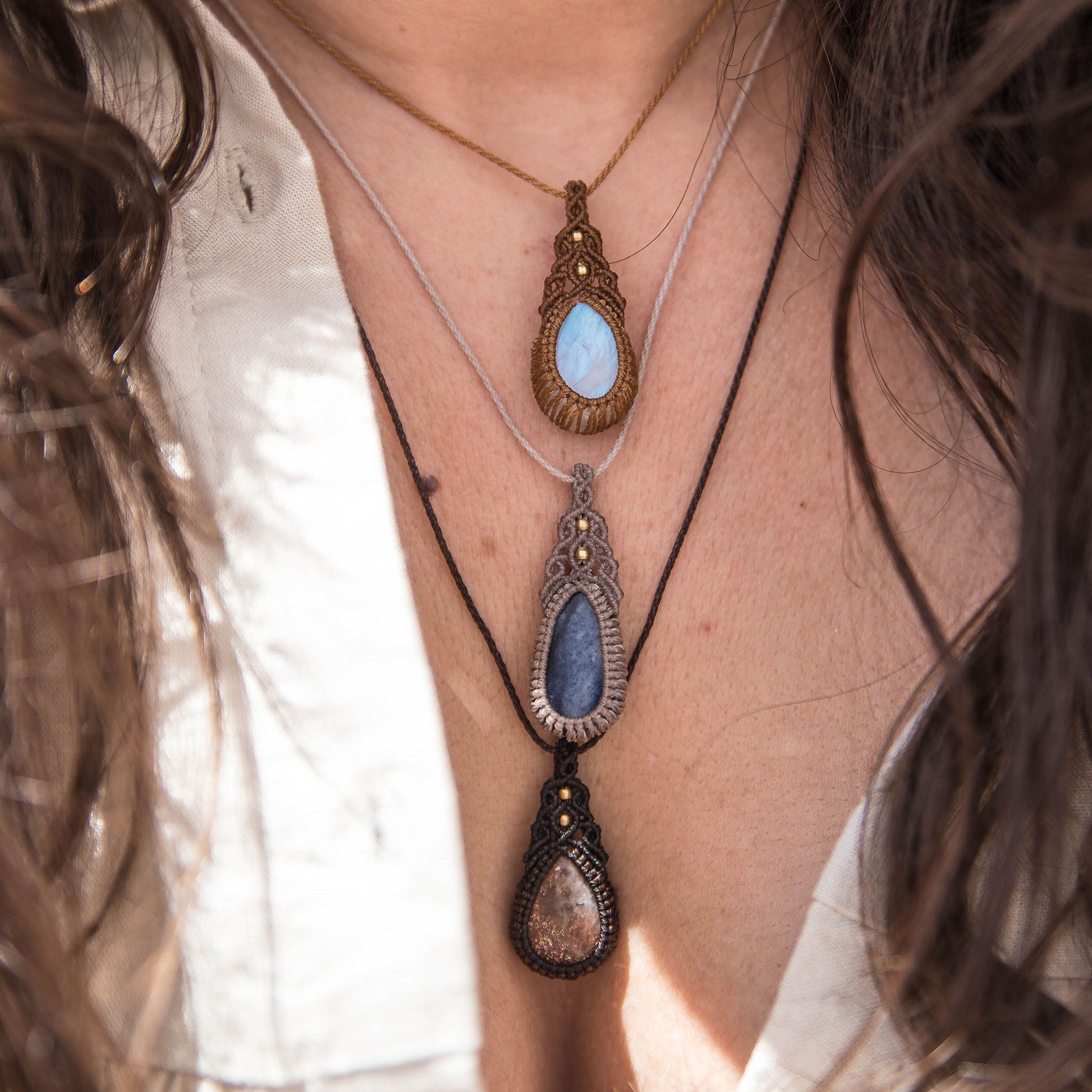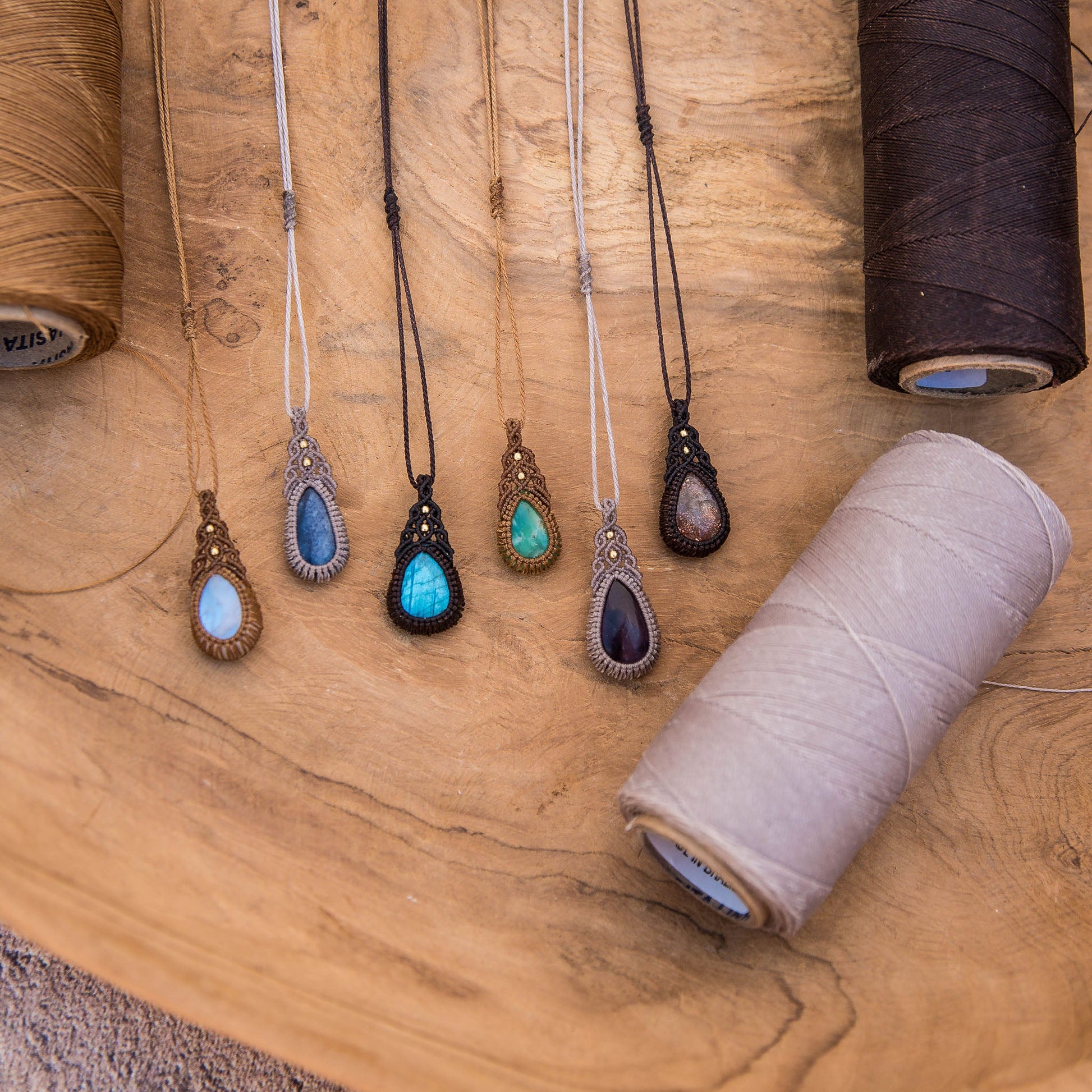 Collares Capricho con diferentes minerales y tejidos con hilo de 0,35mm.