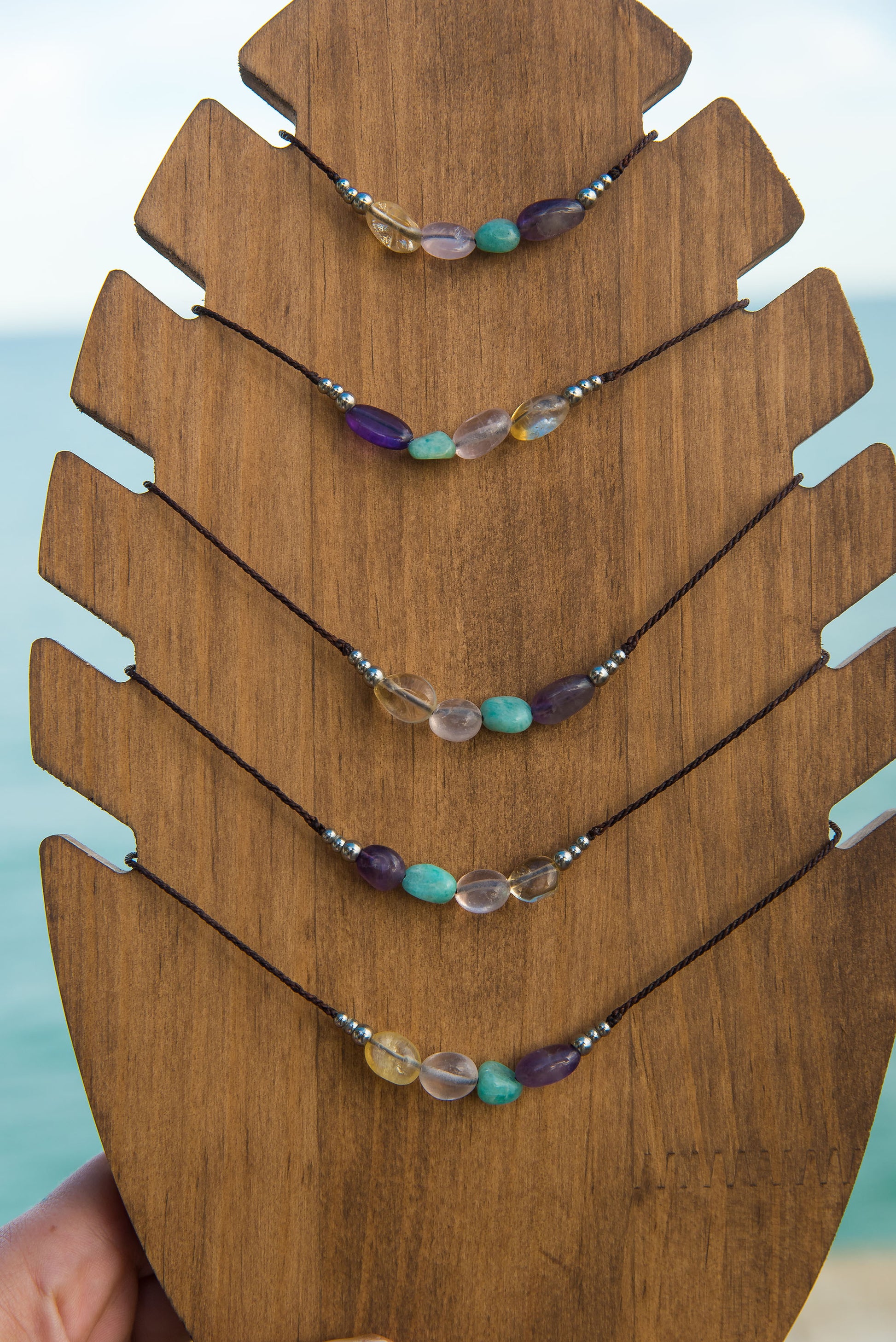 Chokers ajustables con 4 minerales y detalles de acero inoxidable: